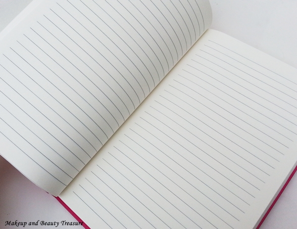 The diary looks fancy and is perfect in terms of size and thickness. It contains 200 pages and they are smooth and are of superb quality. It is hard bound and has ruled pages. The single line spacing is just right for the writing I do. My fiancé considers my writing to be a kiddo type and I always need to remind him that I am a gold medalist *laughs*. Once you reach half of your diary you will find a cute reminder to get a new diary for yourself. The pages are held very strongly and I have not faced issues of pages coming out. I keep my diary in my hand bag while shopping and look up for the things I need to buy and I got many compliments both my known and unknown people.